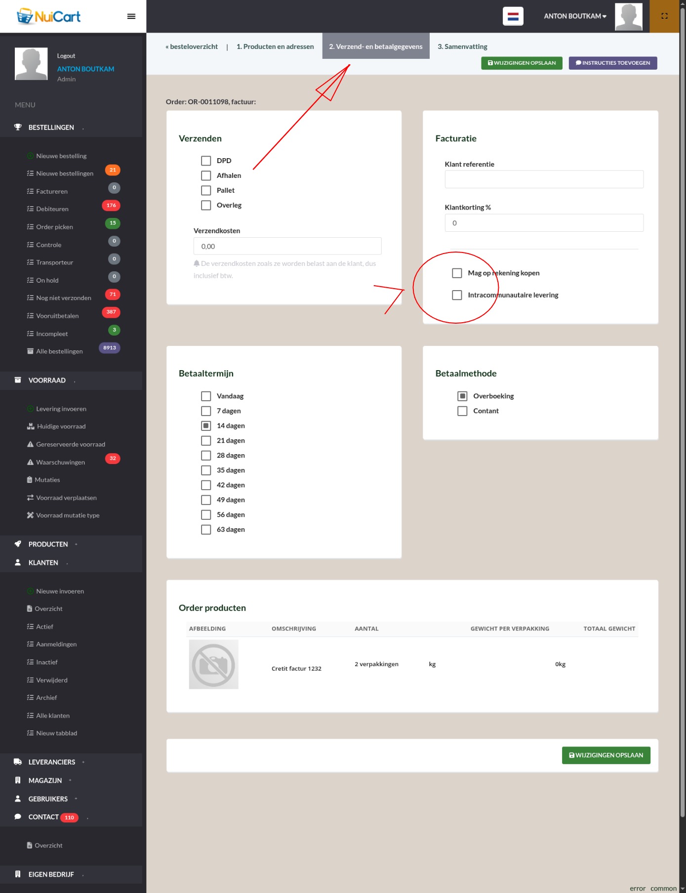 Bestaande bestelling Intra-communautair maken